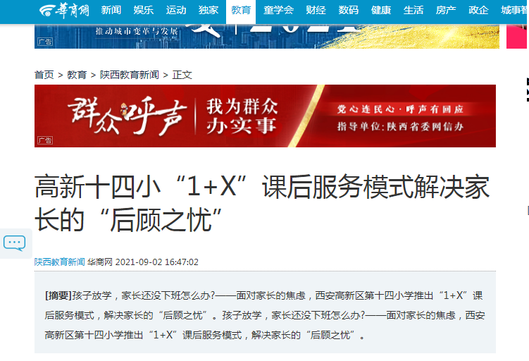 孩子放学,家长还没下班怎么办?——面对家长的焦虑,西安高新区第十四小学推出“1+X”课后服务模式,解决家长的“后顾之忧”。